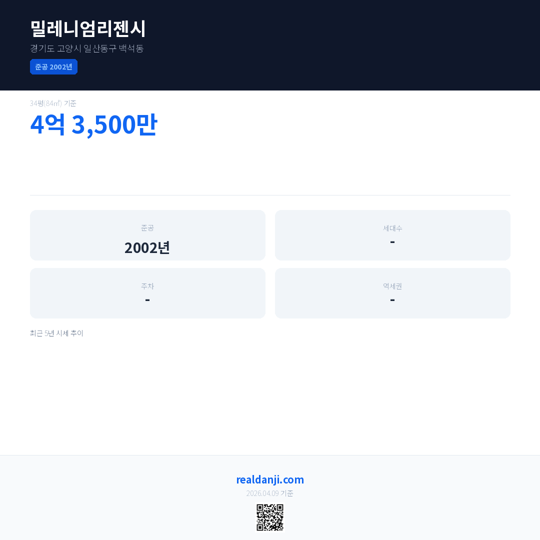밀레니엄리젠시 최근 거래가는 4억 3,500만입니다.