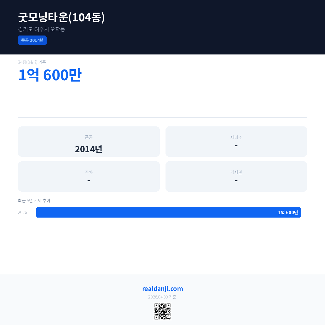굿모닝타운(104동) 최근 거래가는 1억 600만입니다.