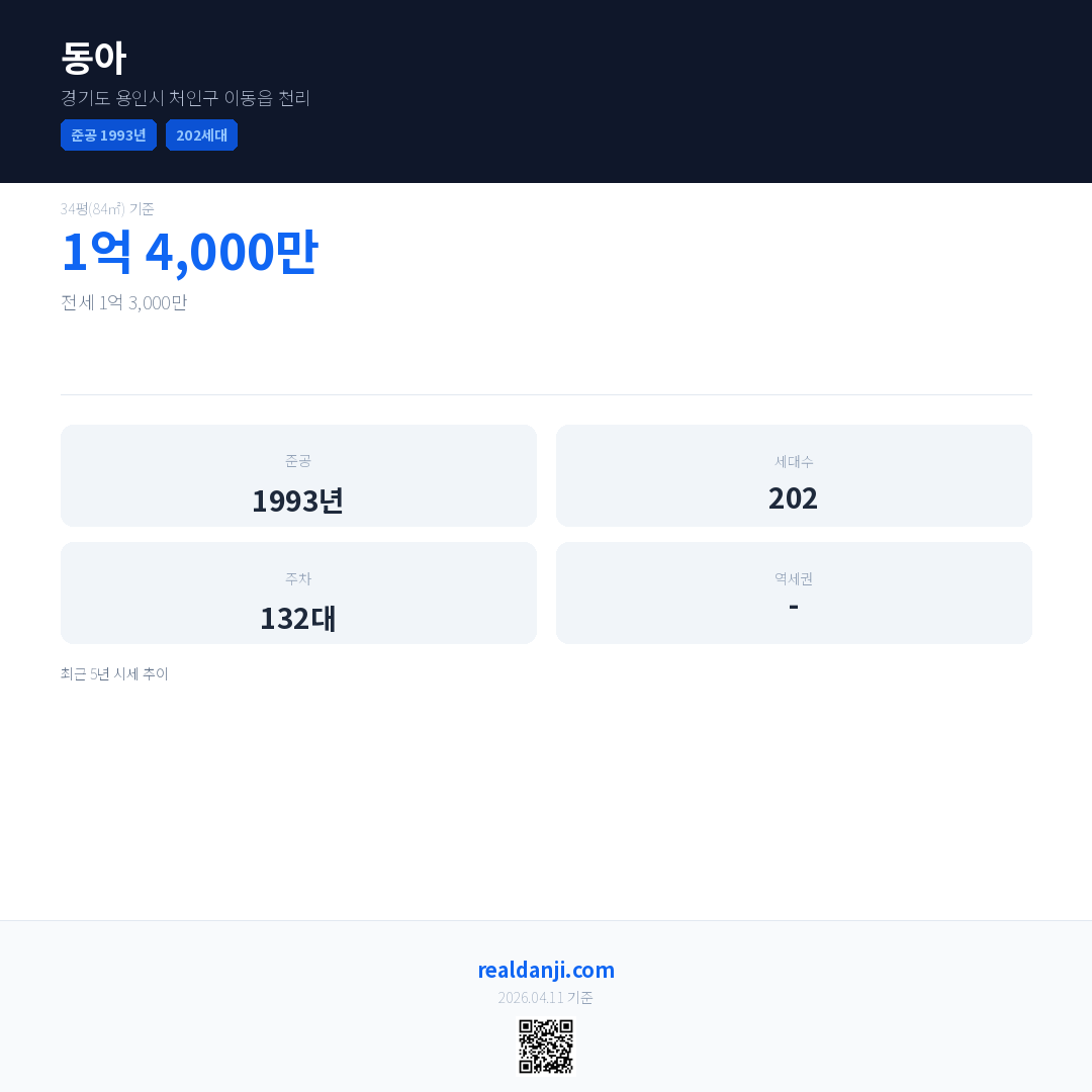 동아 최근 거래가는 1억 4,000만입니다. (2026-04)