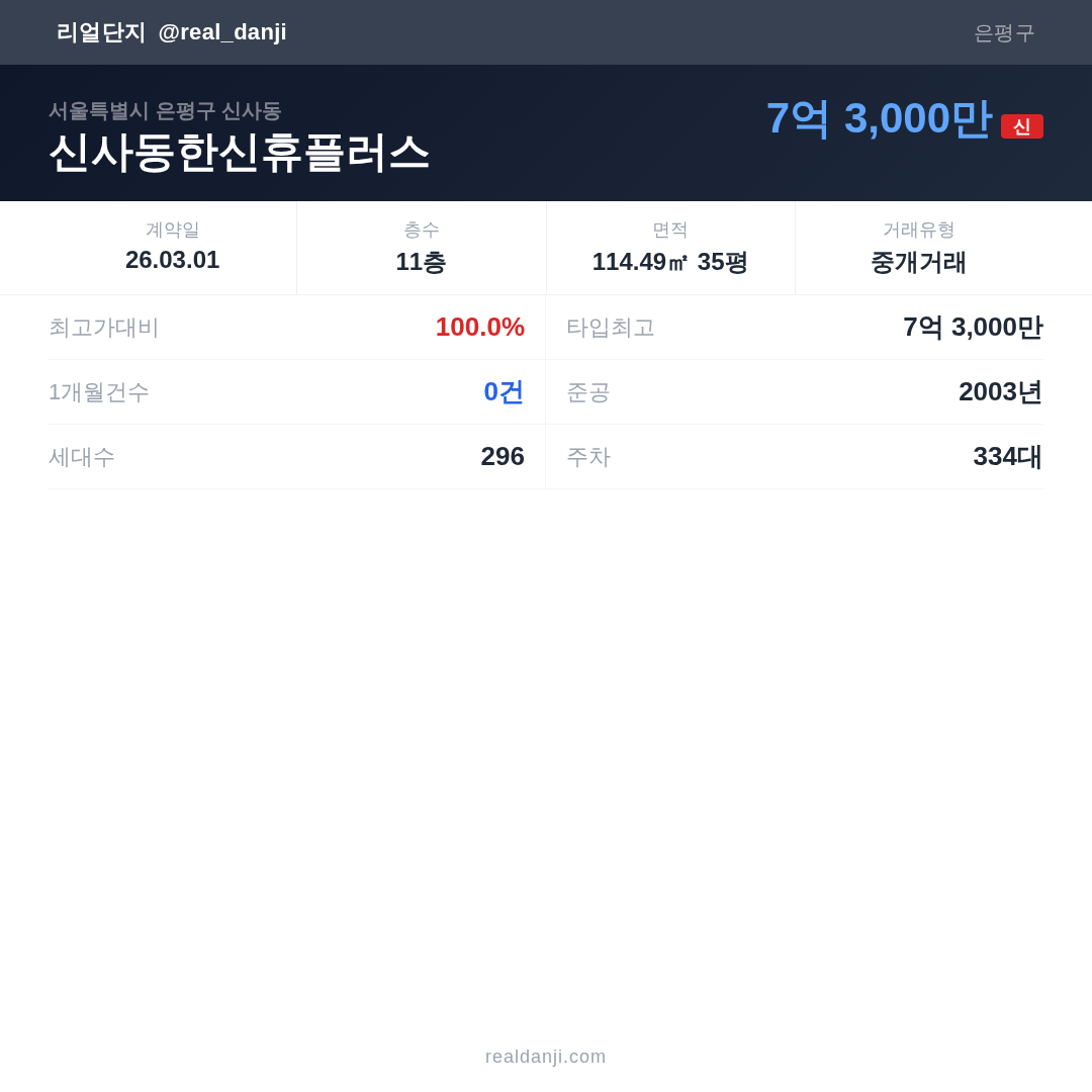 | 2026.03.01 | 114㎡ | 11층 | 7억 3,000만 |