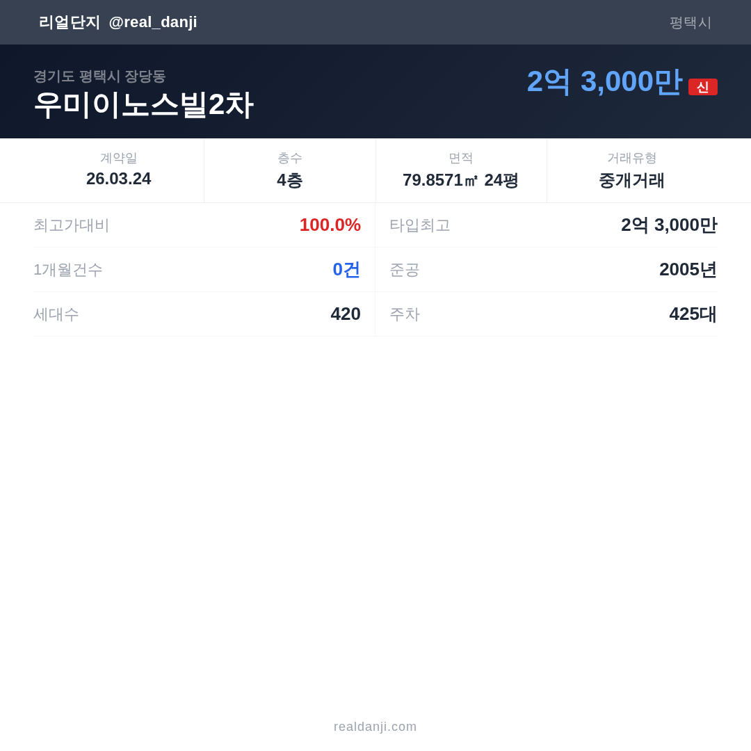 우미이노스빌2차 최근 거래가는 2억 3,000만입니다. (2026-03)