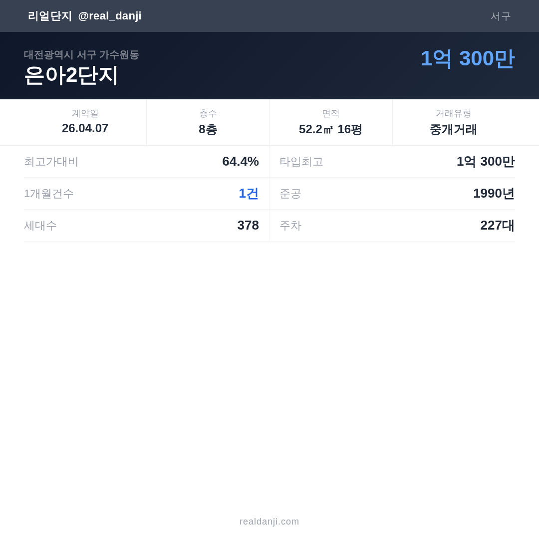 | 2026.04.07 | 52㎡ | 8층 | 1억 300만 |