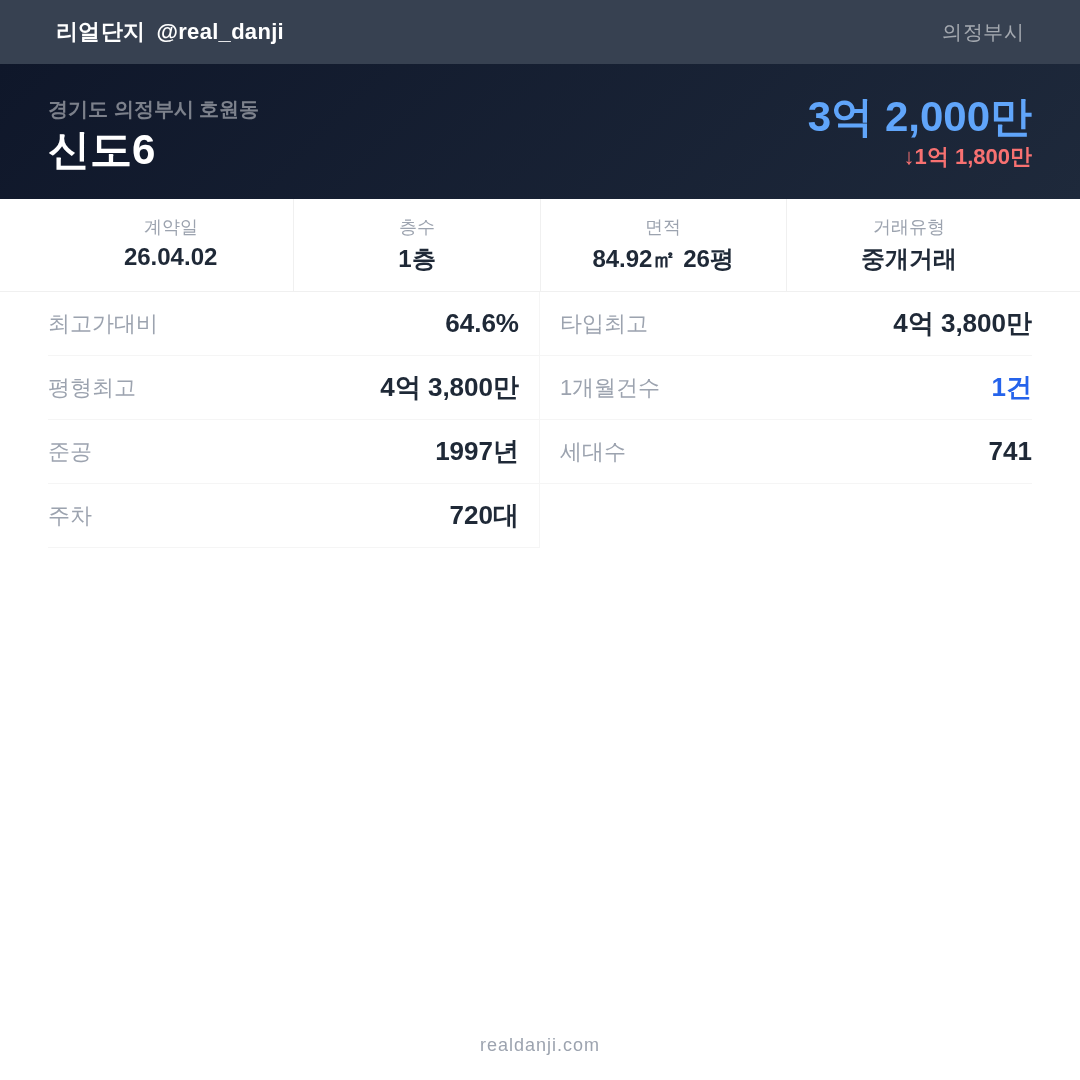 | 2026.04.02 | 85㎡ | 1층 | 3억 2,000만 |