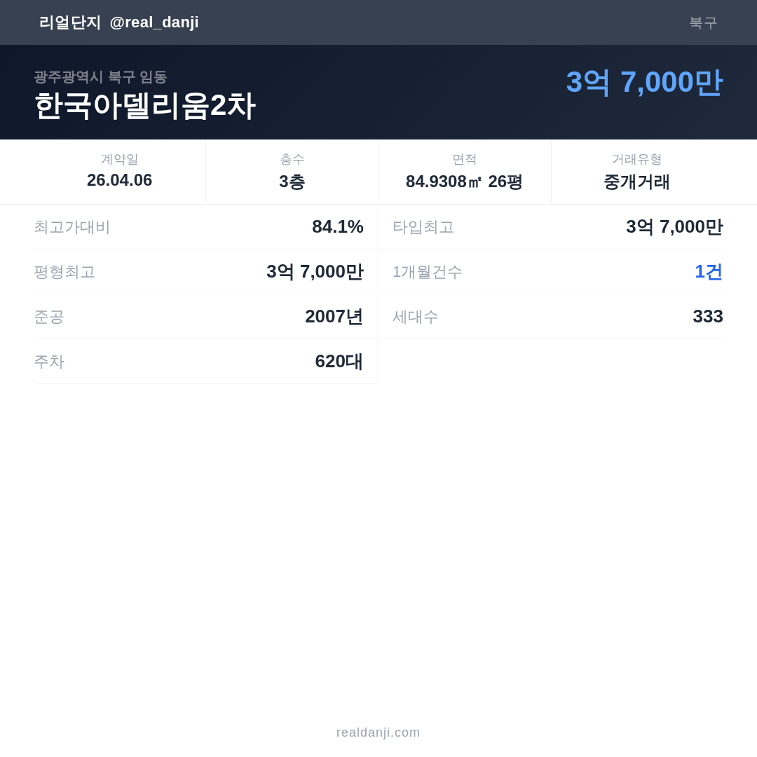 | 2026.04.06 | 85㎡ | 3층 | 3억 7,000만 |