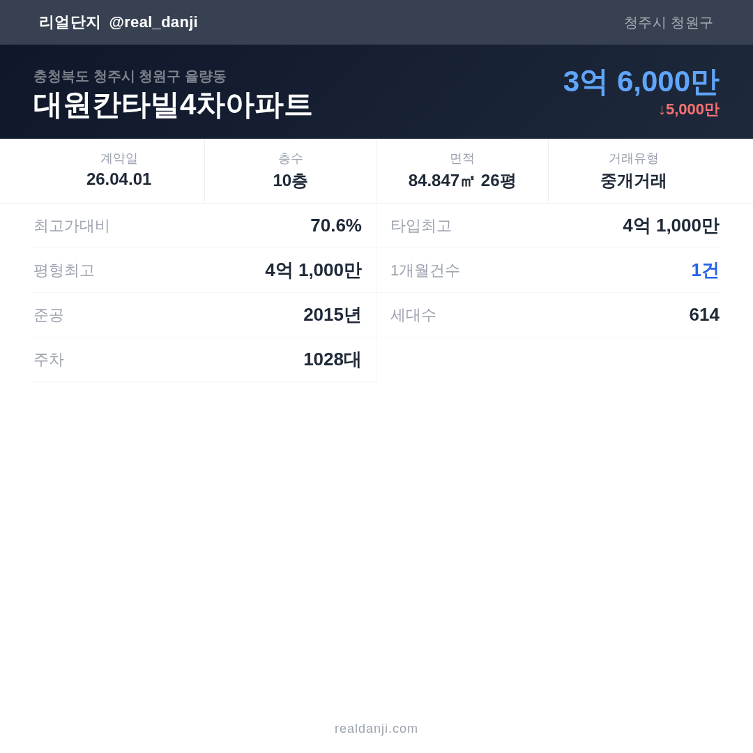 | 2026.04.01 | 85㎡ | 10층 | 3억 6,000만 |
