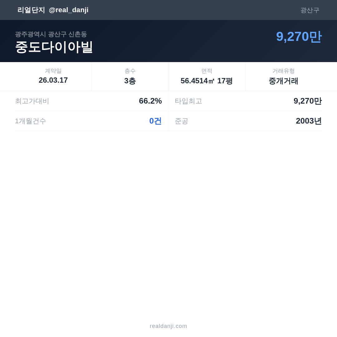 중도다이아빌 최근 거래가는 1억 4,000만입니다. (2026-03)