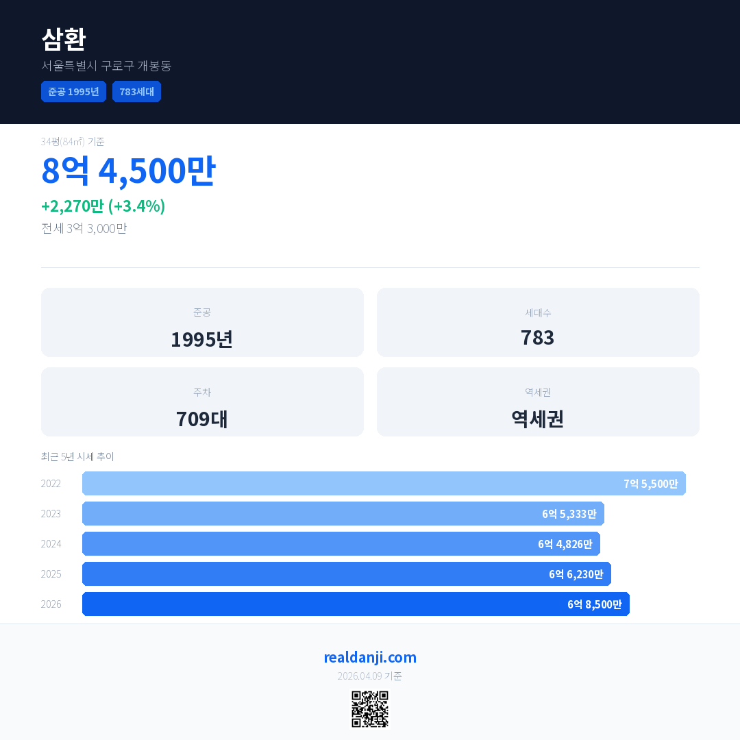 삼환 최근 거래가는 8억 4,500만입니다. (2026-03)