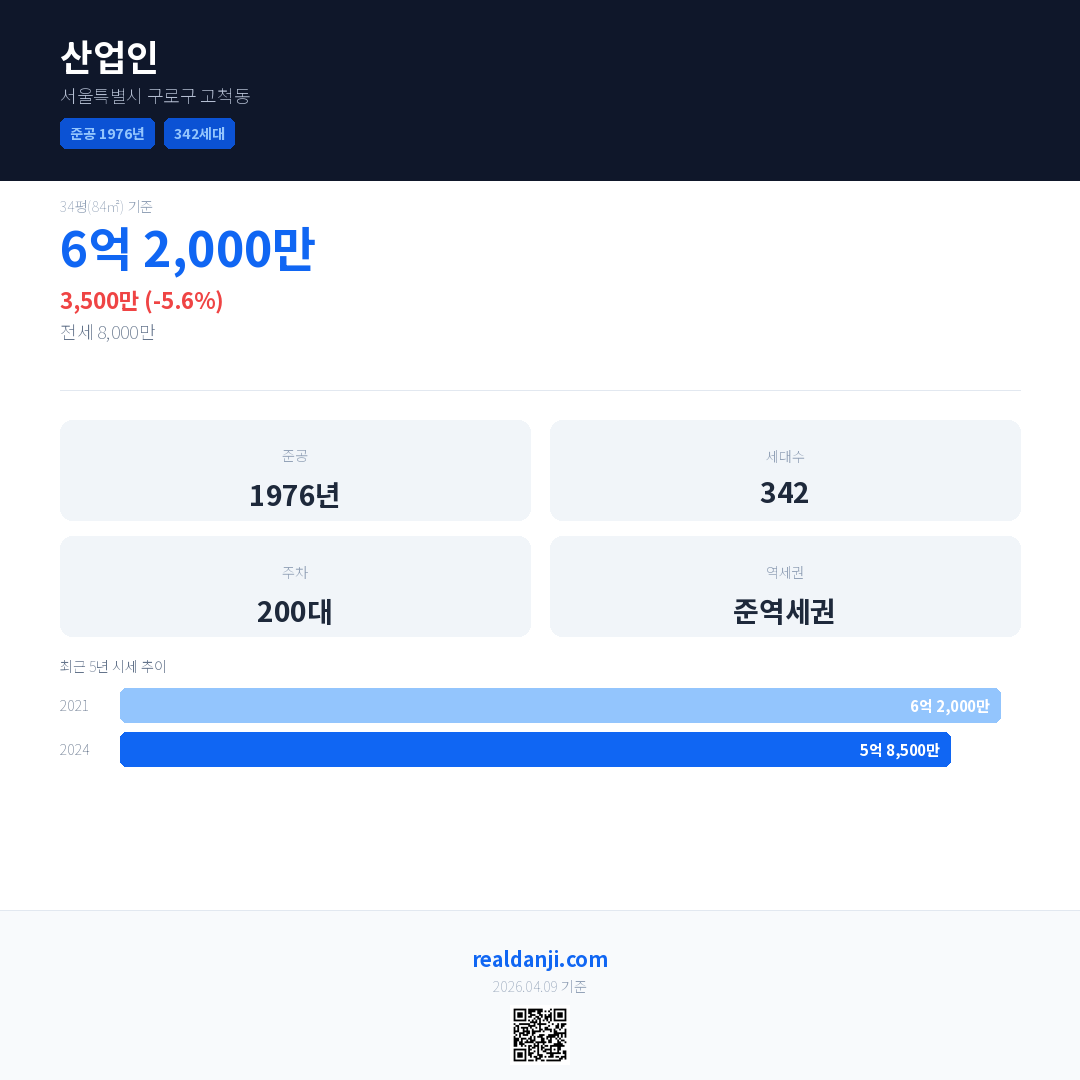 산업인 최근 거래가는 6억 2,000만입니다. (2025-10)