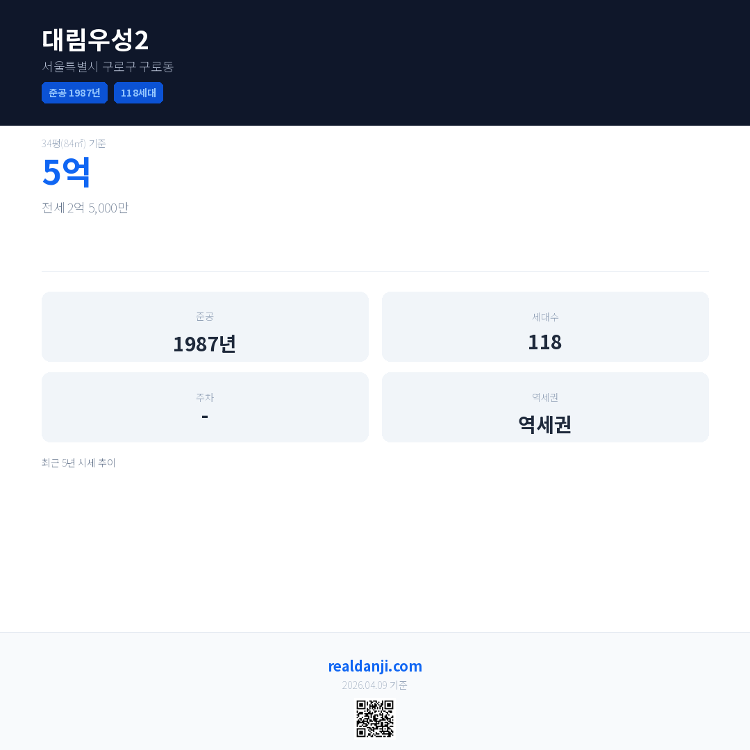 대림우성2 최근 거래가는 5억입니다. (2026-04)