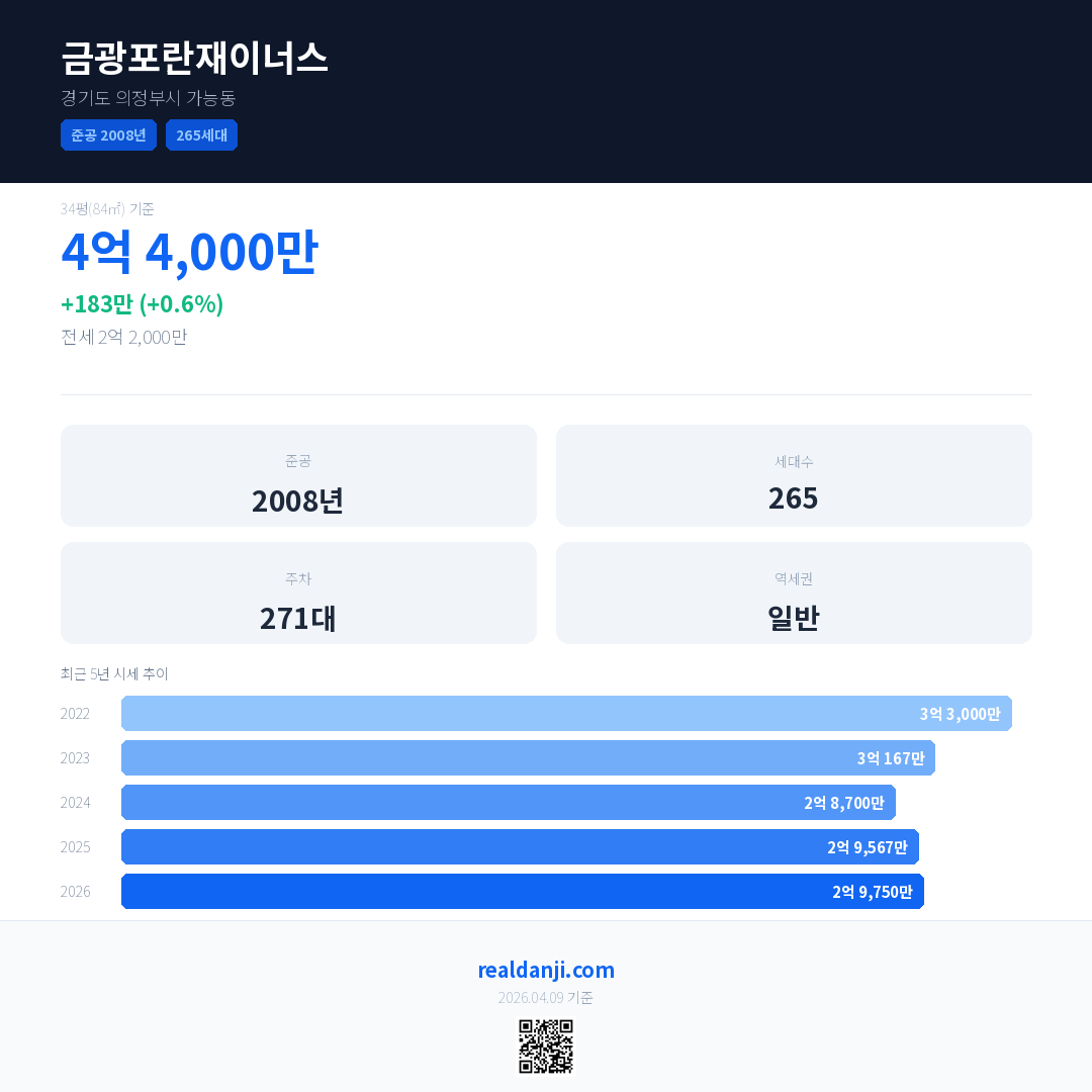 금광포란재이너스 최근 거래가는 4억 4,000만입니다. (2026-01)