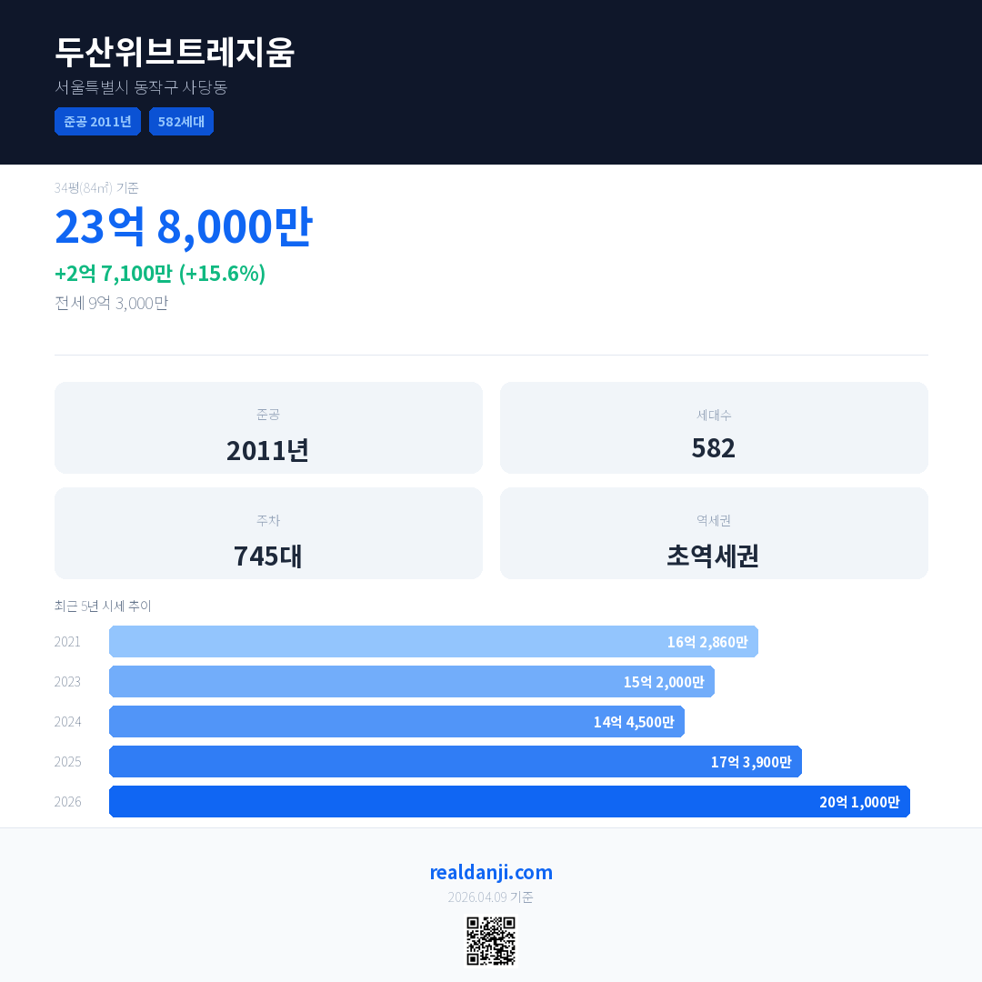 두산위브트레지움 최근 거래가는 23억 8,000만입니다. (2026-03)