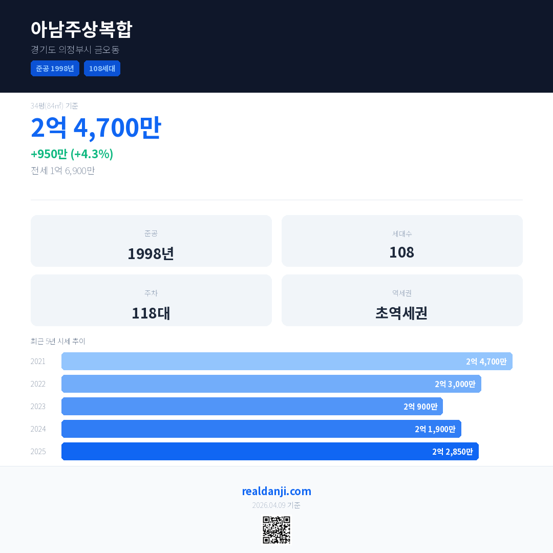 아남주상복합 최근 거래가는 2억 4,700만입니다. (2026-03)