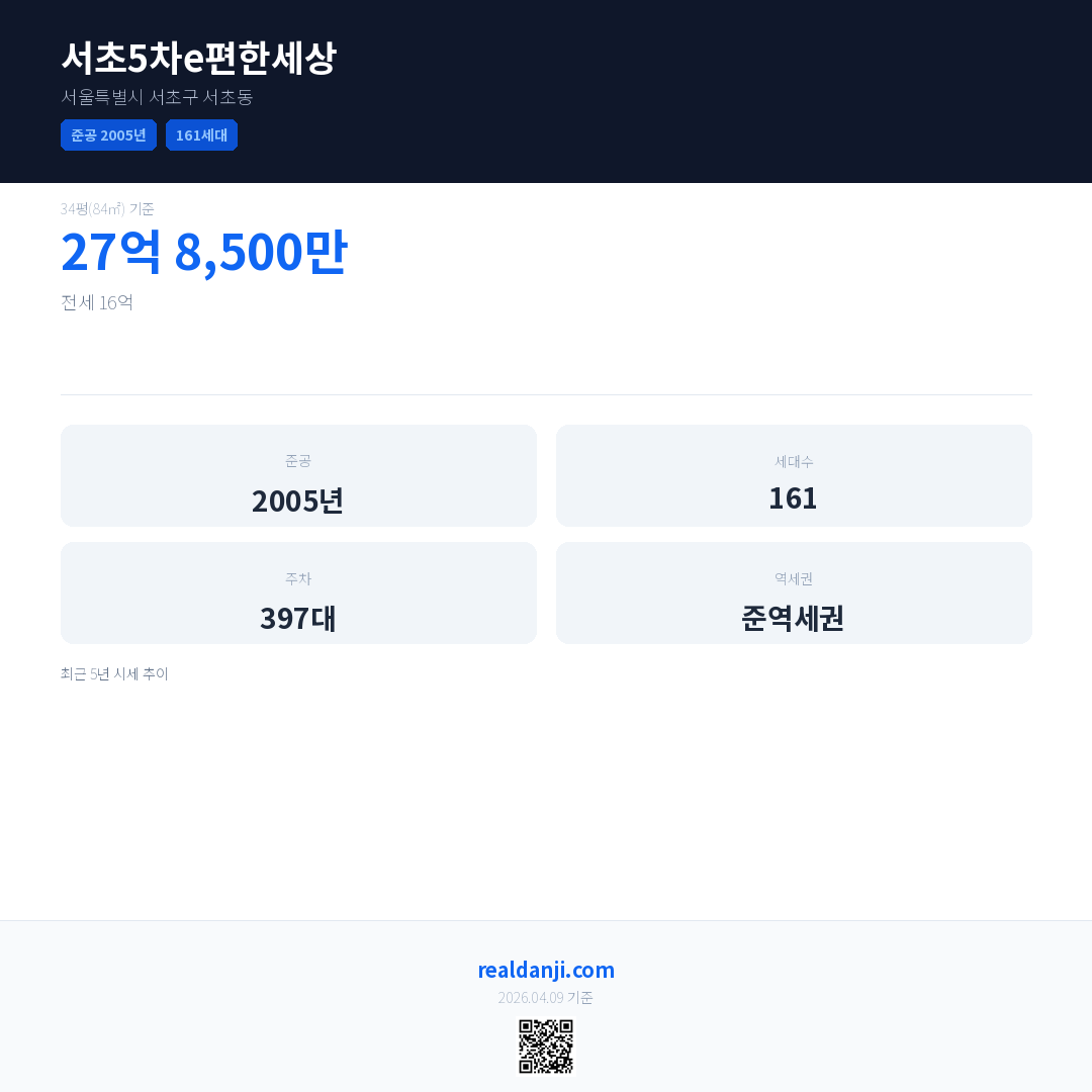 서초5차e편한세상 최근 거래가는 27억 8,500만입니다. (2026-04)