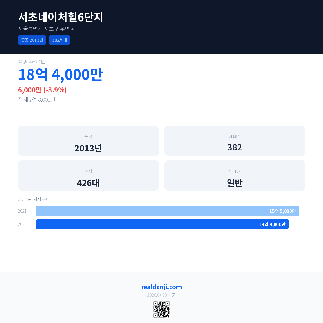 서초네이처힐6단지 최근 거래가는 18억 4,000만입니다. (2026-01)