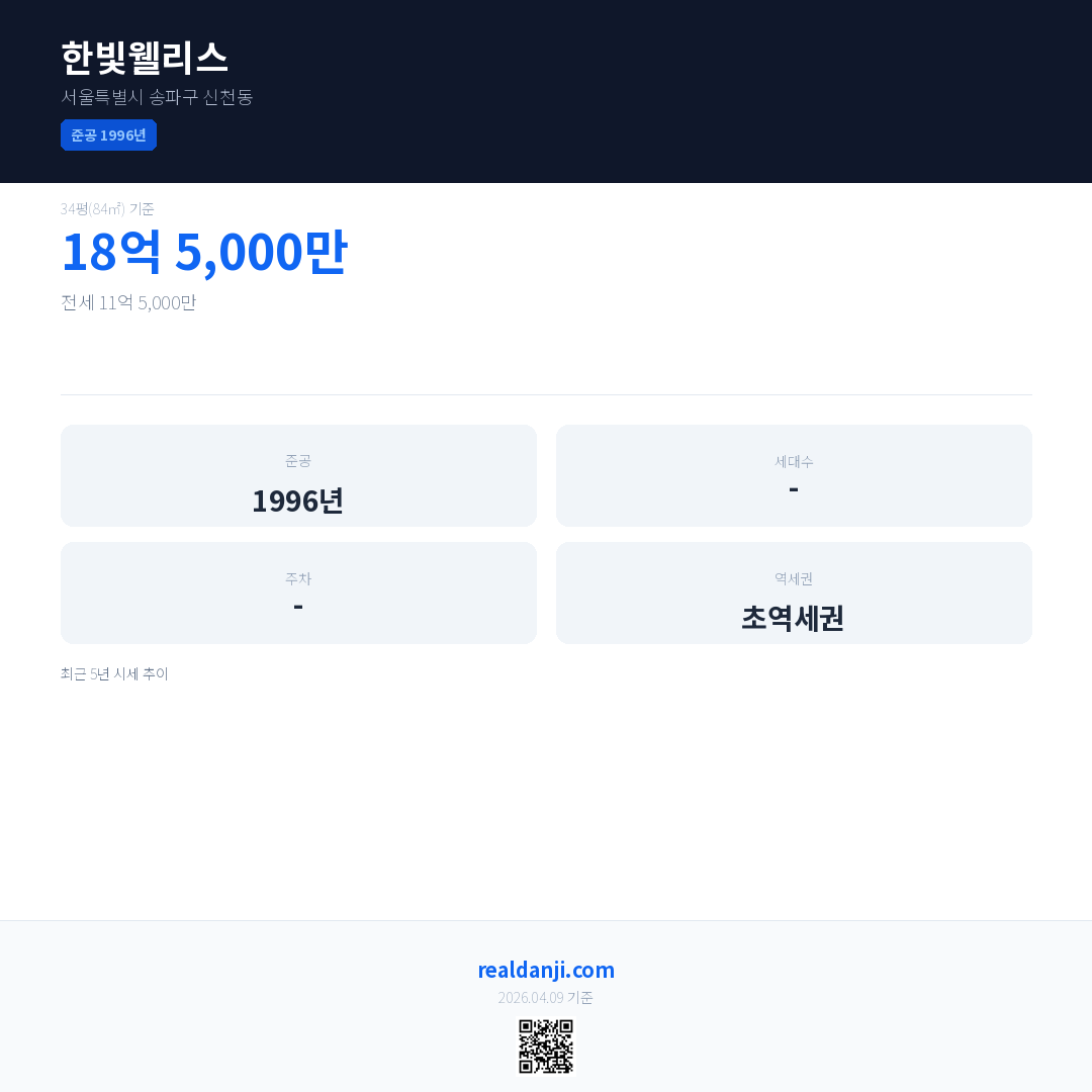 한빛웰리스 최근 거래가는 18억 5,000만입니다. (2026-01)
