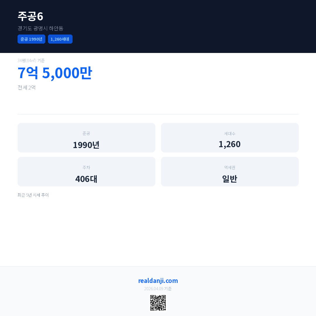 주공6 최근 거래가는 7억 5,000만입니다. (2026-01)