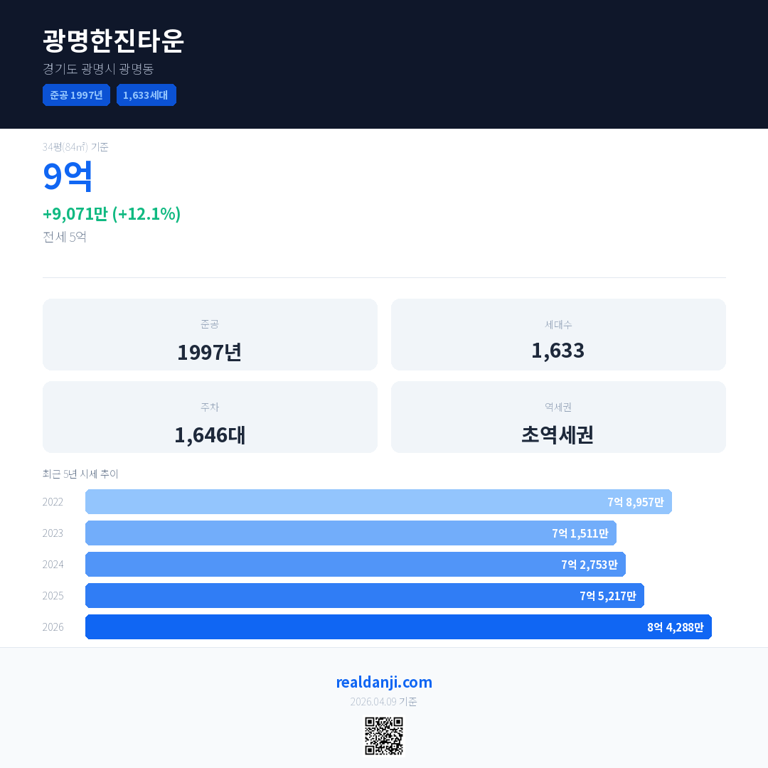 광명한진타운 최근 거래가는 9억입니다. (2026-03)