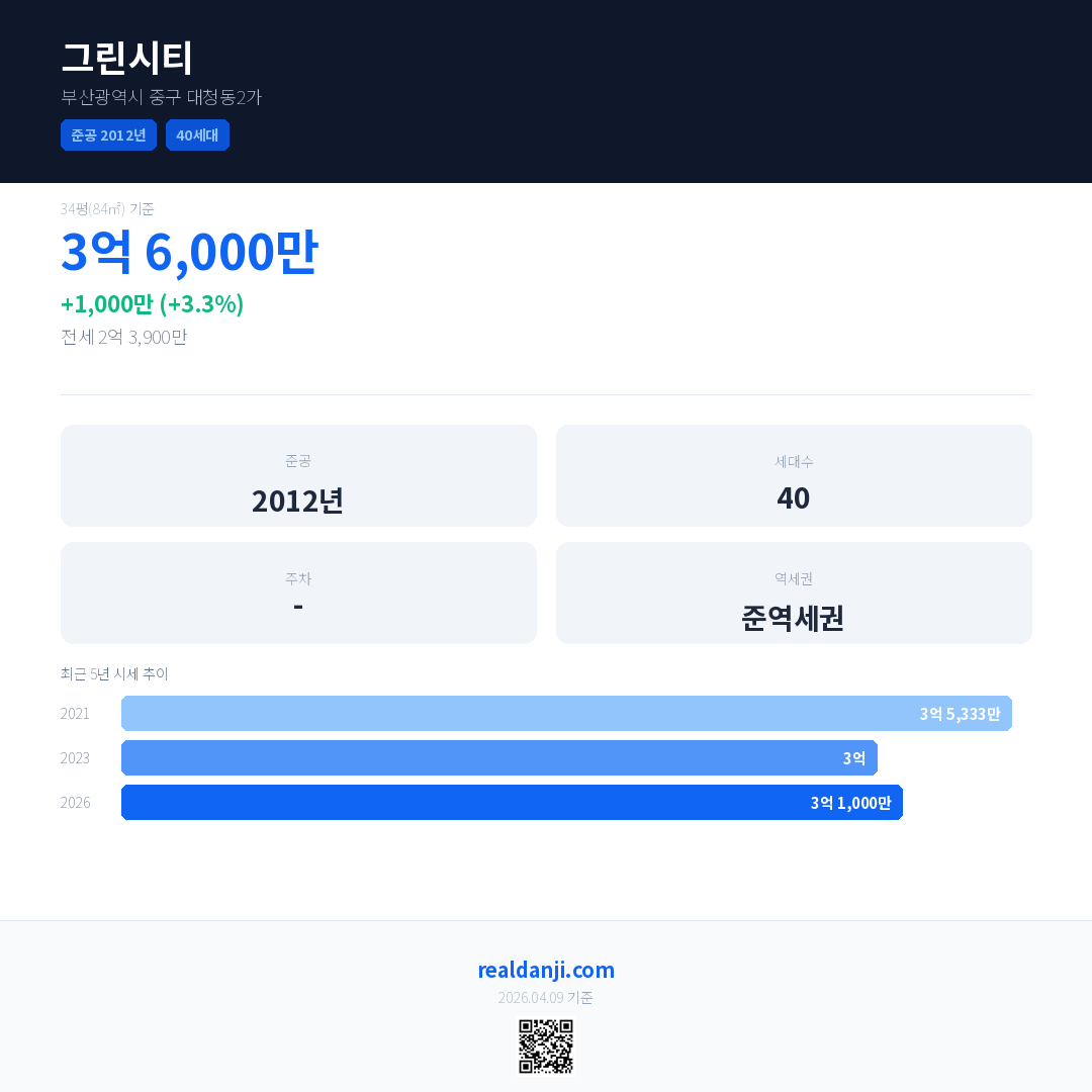 그린시티 최근 거래가는 3억 1,000만입니다. (2026-03)