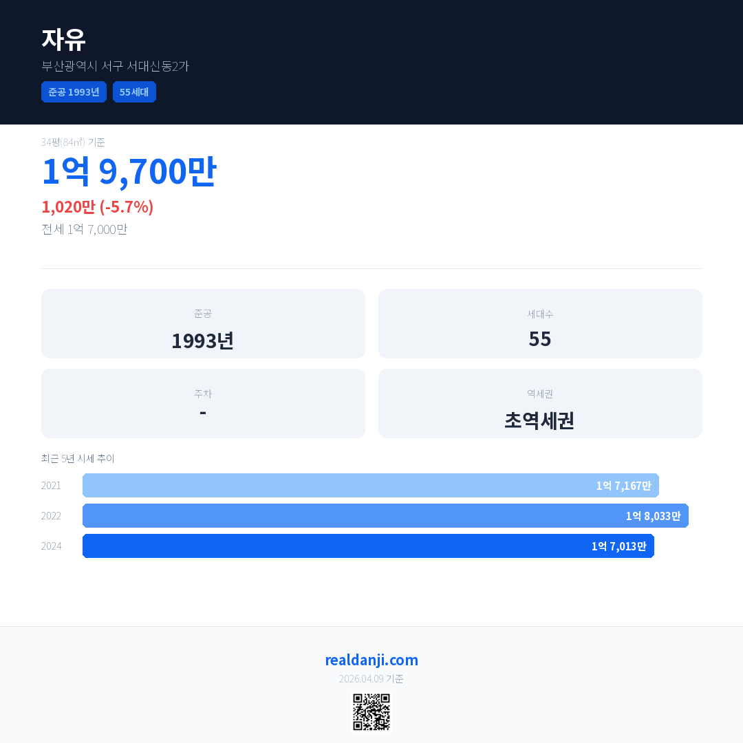 자유 최근 거래가는 2억 1,700만입니다. (2024-12)