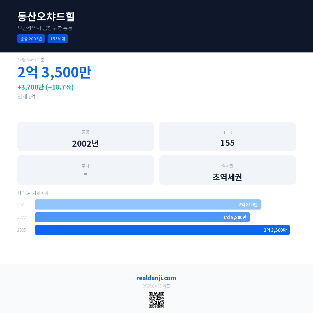 동산오챠드힐 최근 거래가는 2억 3,500만입니다. (2025-03)