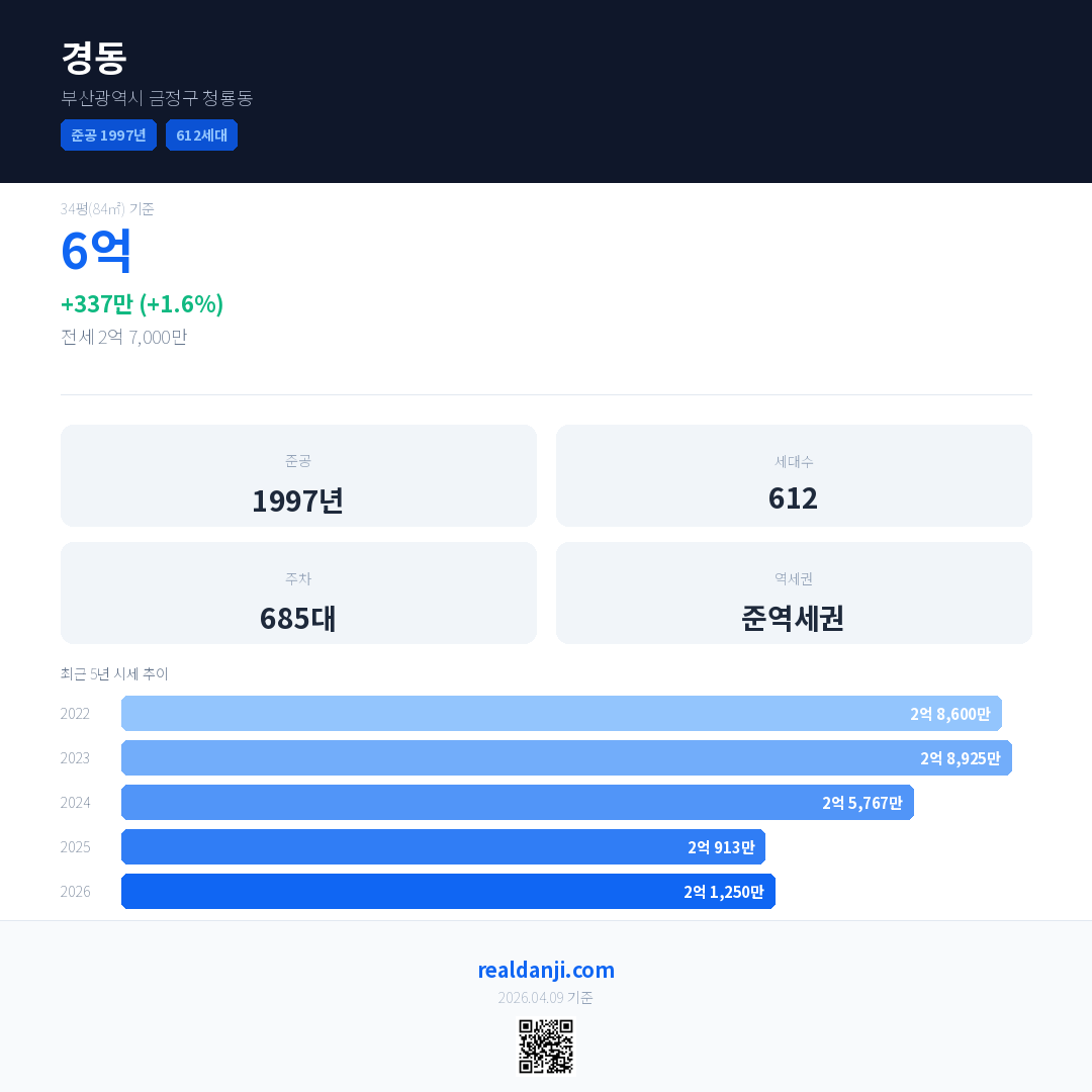 경동 최근 거래가는 6억입니다. (2026-04)
