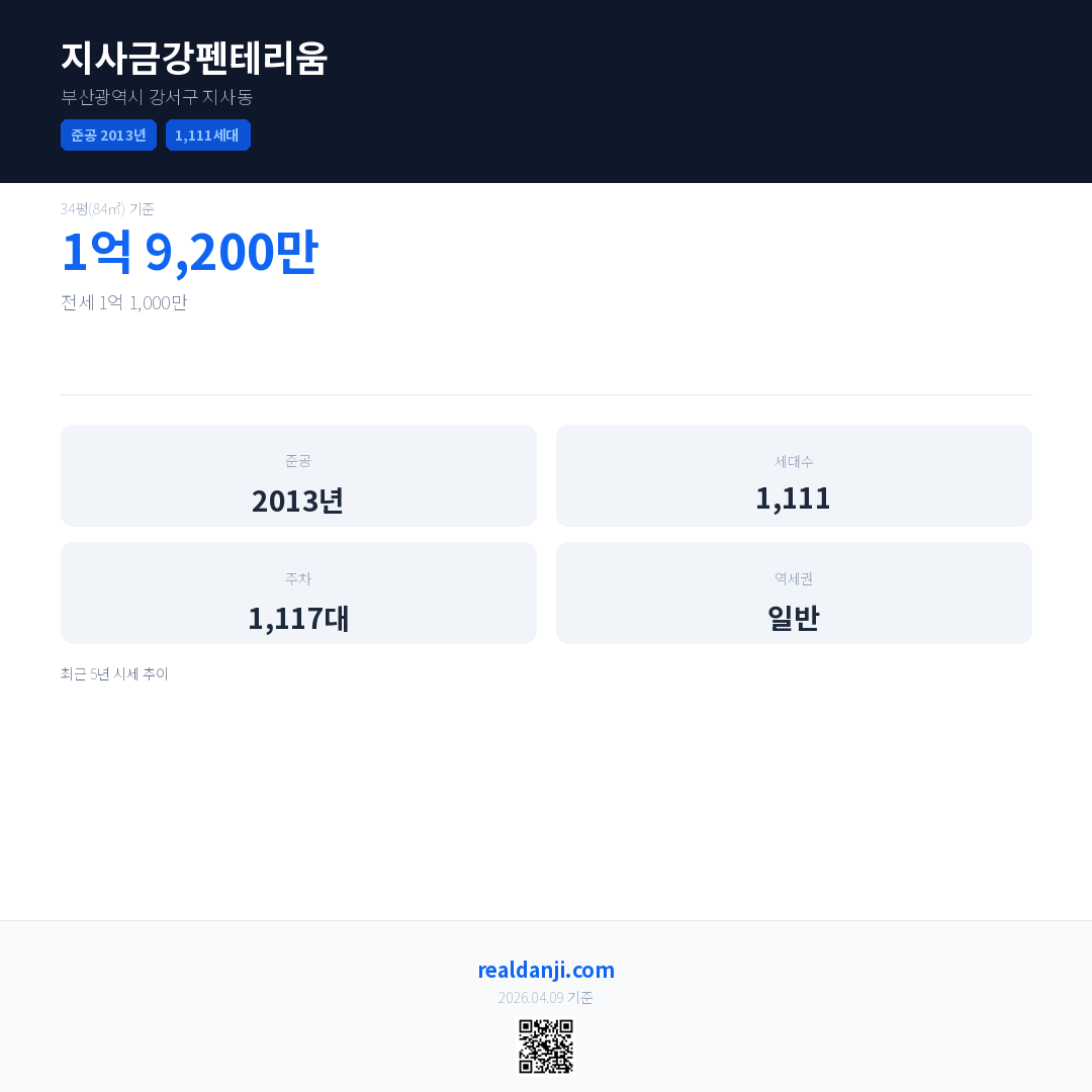 지사금강펜테리움 최근 거래가는 1억 9,200만입니다. (2026-04)