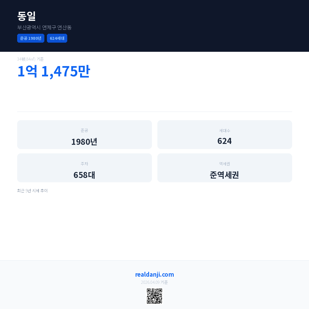 동일은(는) 1980년에 준공되었으며, 현재 46년차입니다. 총 624세대 규모입니다.