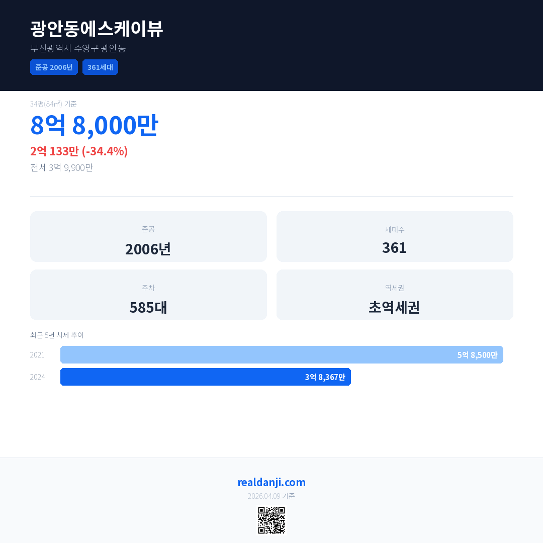 광안동에스케이뷰 최근 거래가는 8억 8,000만입니다. (2026-03)