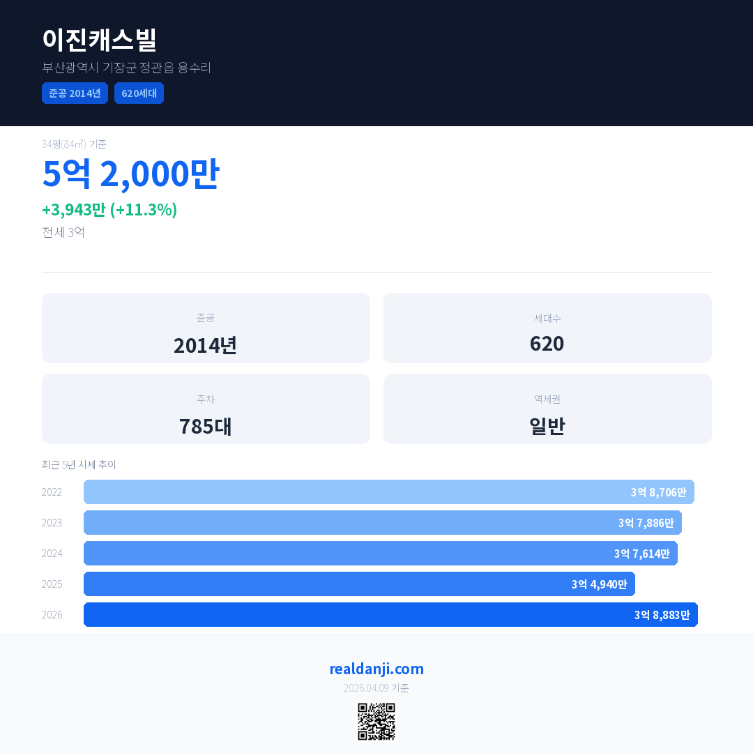 이진캐스빌 최근 거래가는 5억 2,000만입니다. (2026-04)