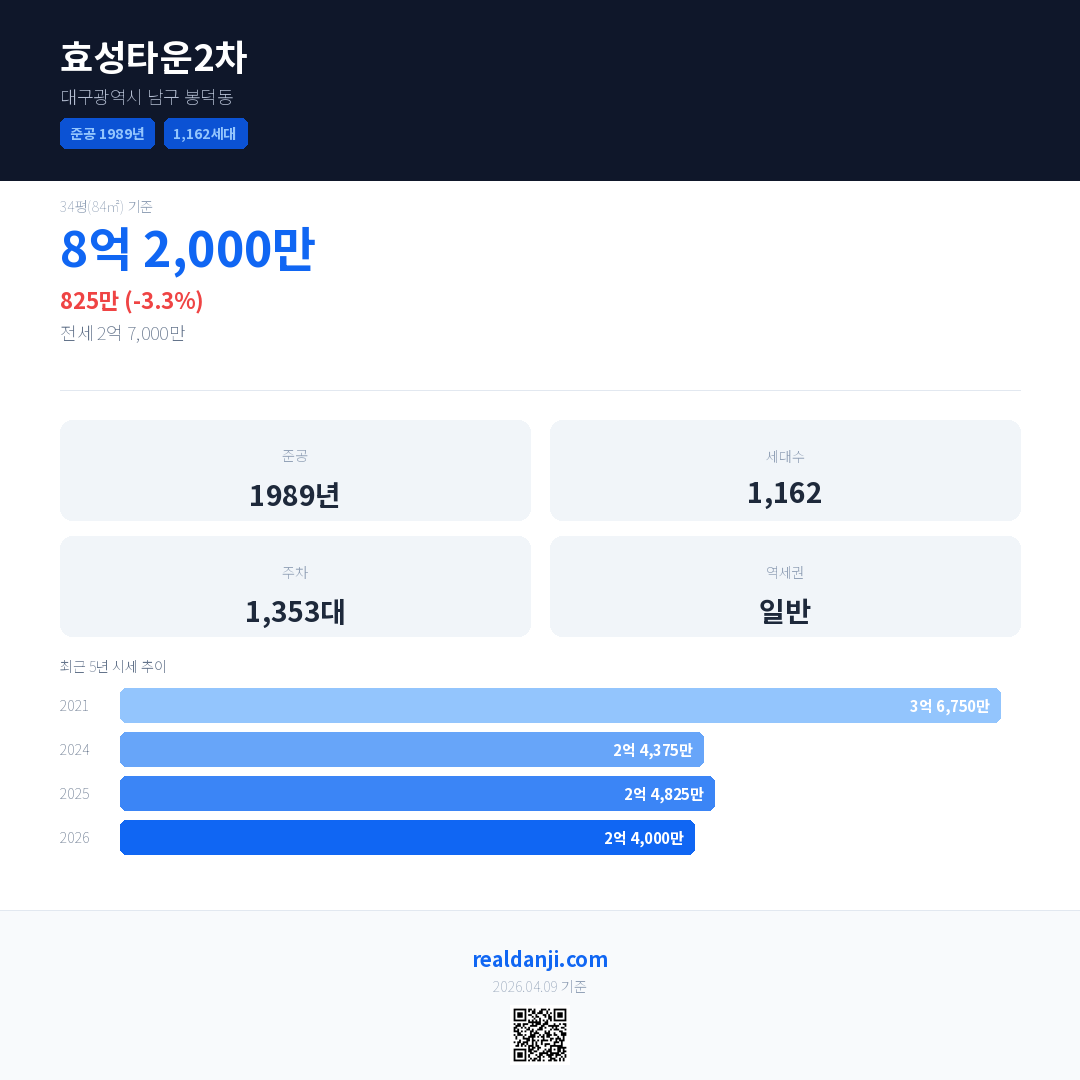 효성타운2차 최근 거래가는 8억 2,000만입니다. (2026-03)
