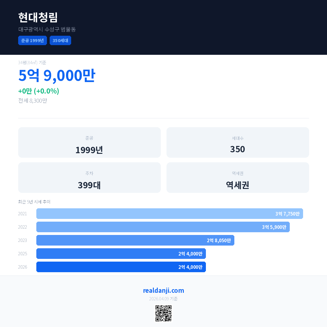 현대청림 최근 거래가는 5억 9,000만입니다. (2026-03)