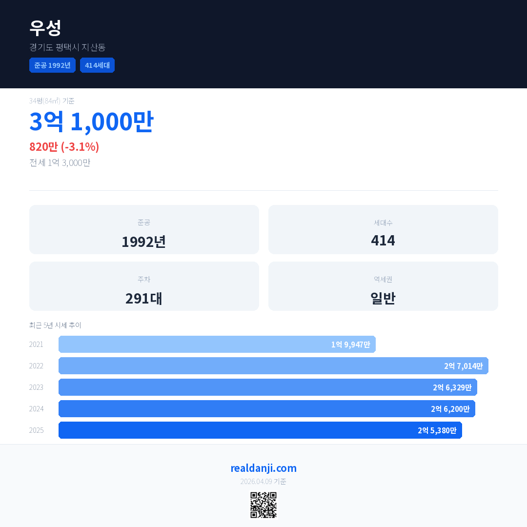 우성 최근 거래가는 3억 1,000만입니다. (2026-03)