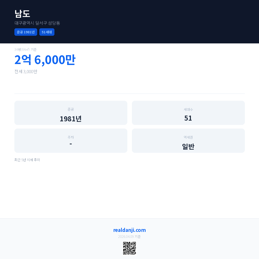 남도 최근 거래가는 1억 6,500만입니다. (2023-07)