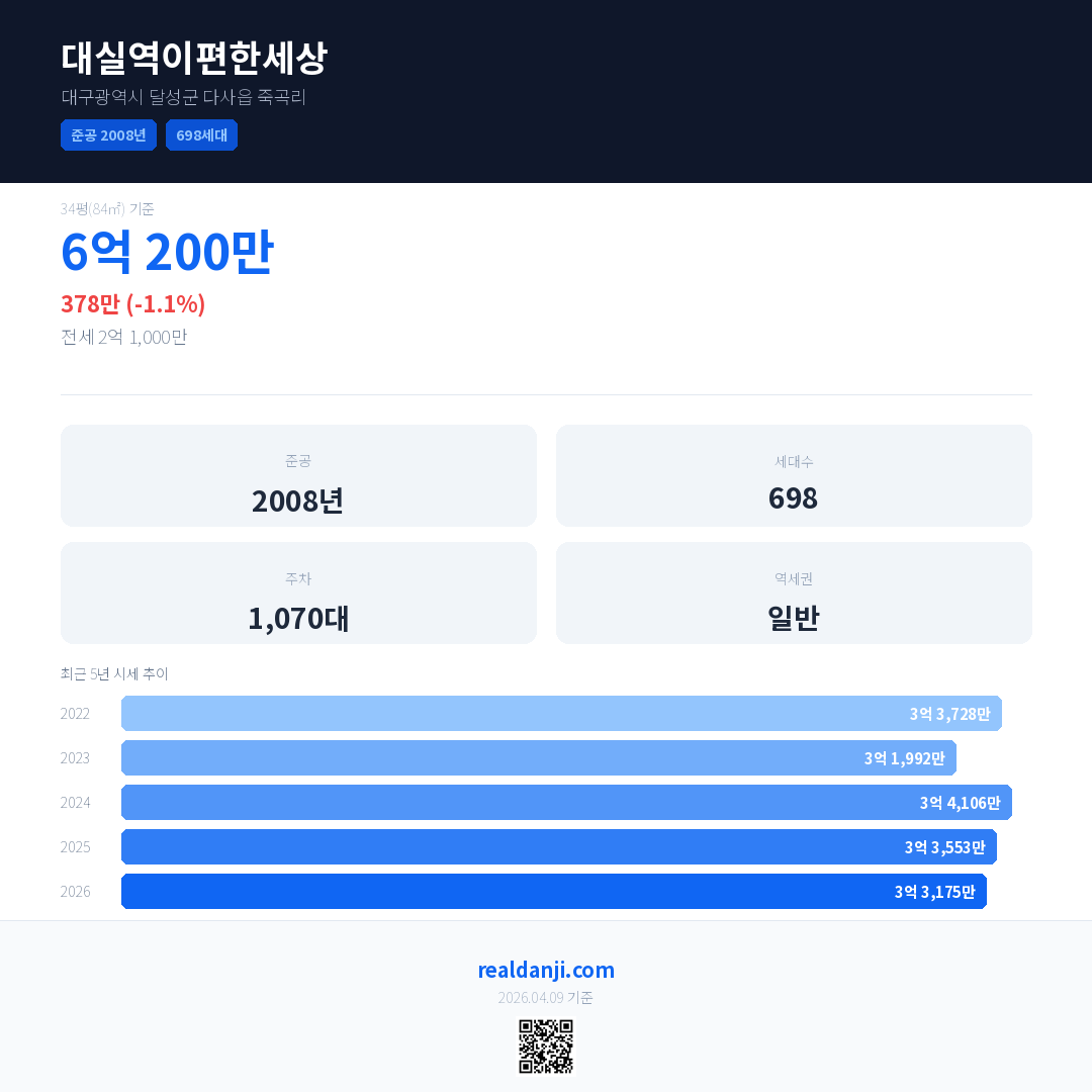 대실역이편한세상 최근 거래가는 6억 200만입니다. (2026-04)