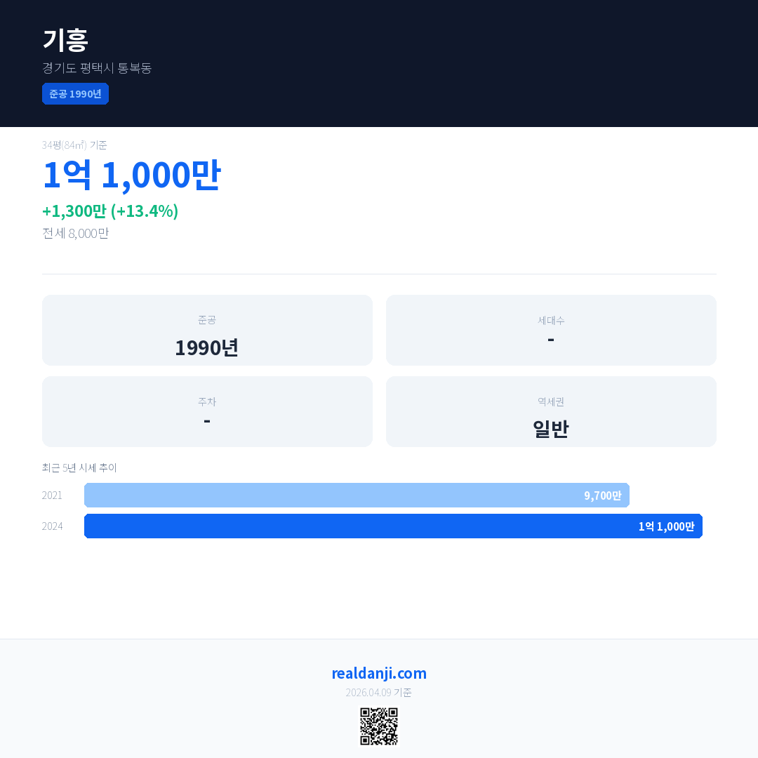 기흥 최근 거래가는 1억 1,000만입니다. (2024-12)