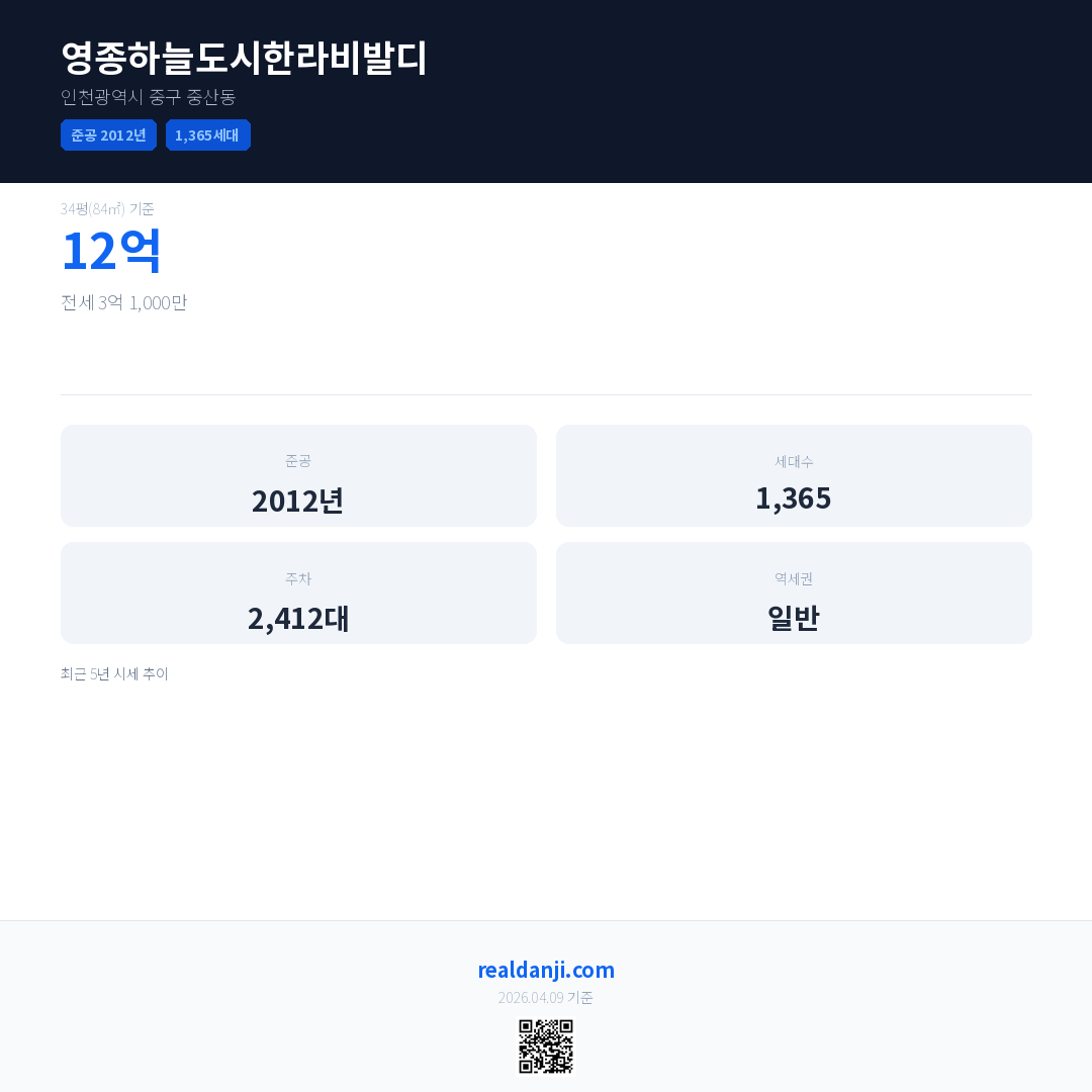 영종하늘도시한라비발디 최근 거래가는 12억입니다. (2026-03)