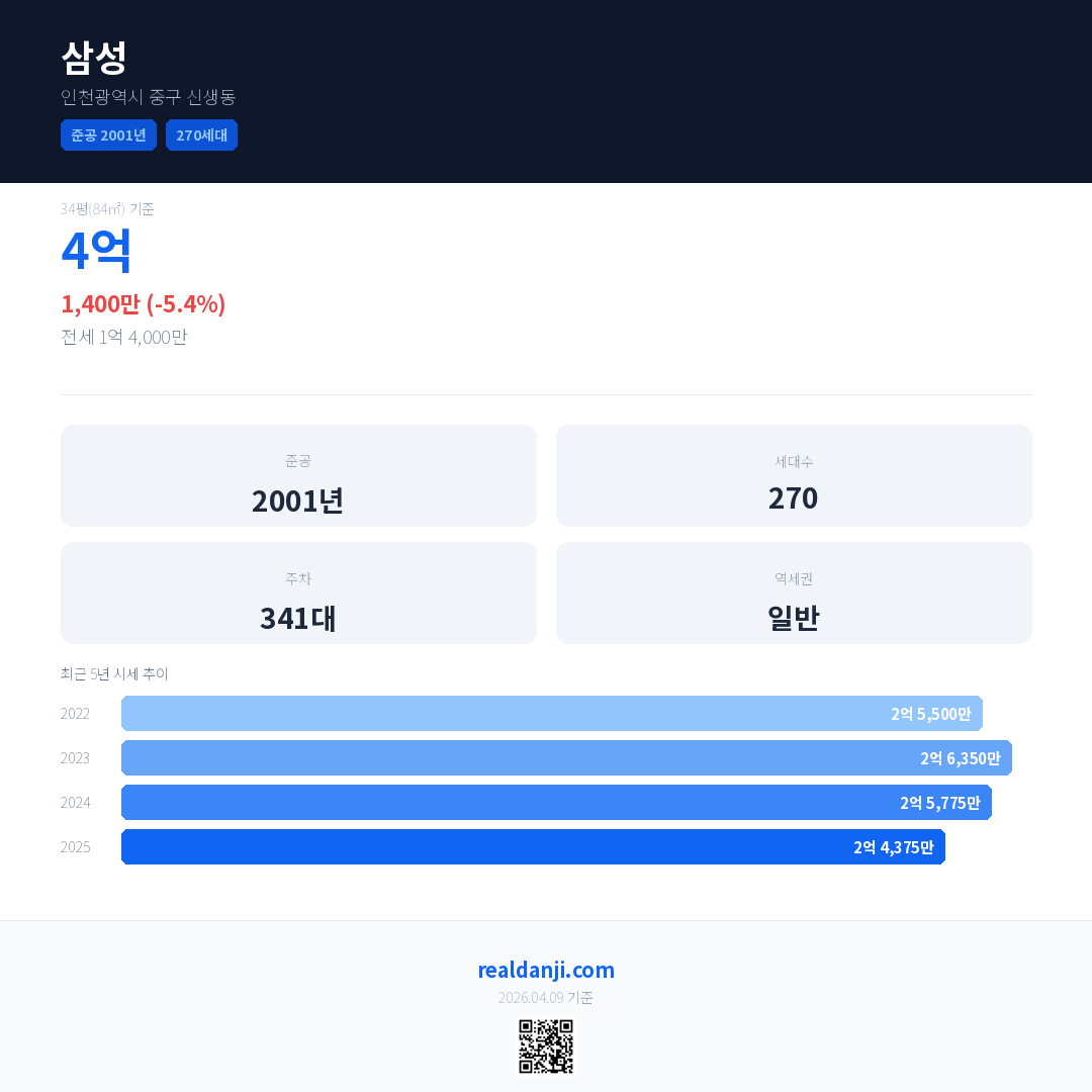 삼성 최근 거래가는 4억입니다. (2026-03)