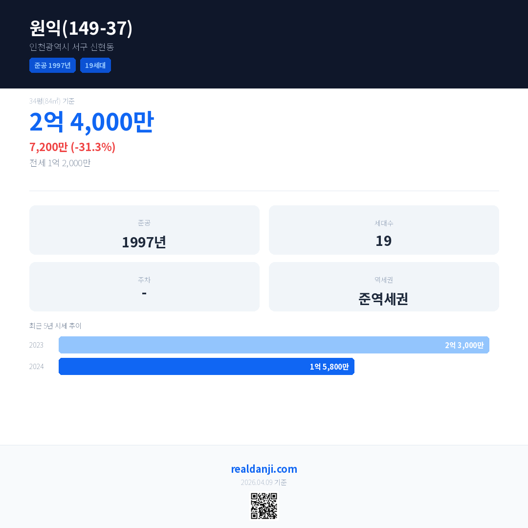 원익(149-37) 최근 거래가는 2억 4,000만입니다. (2024-07)