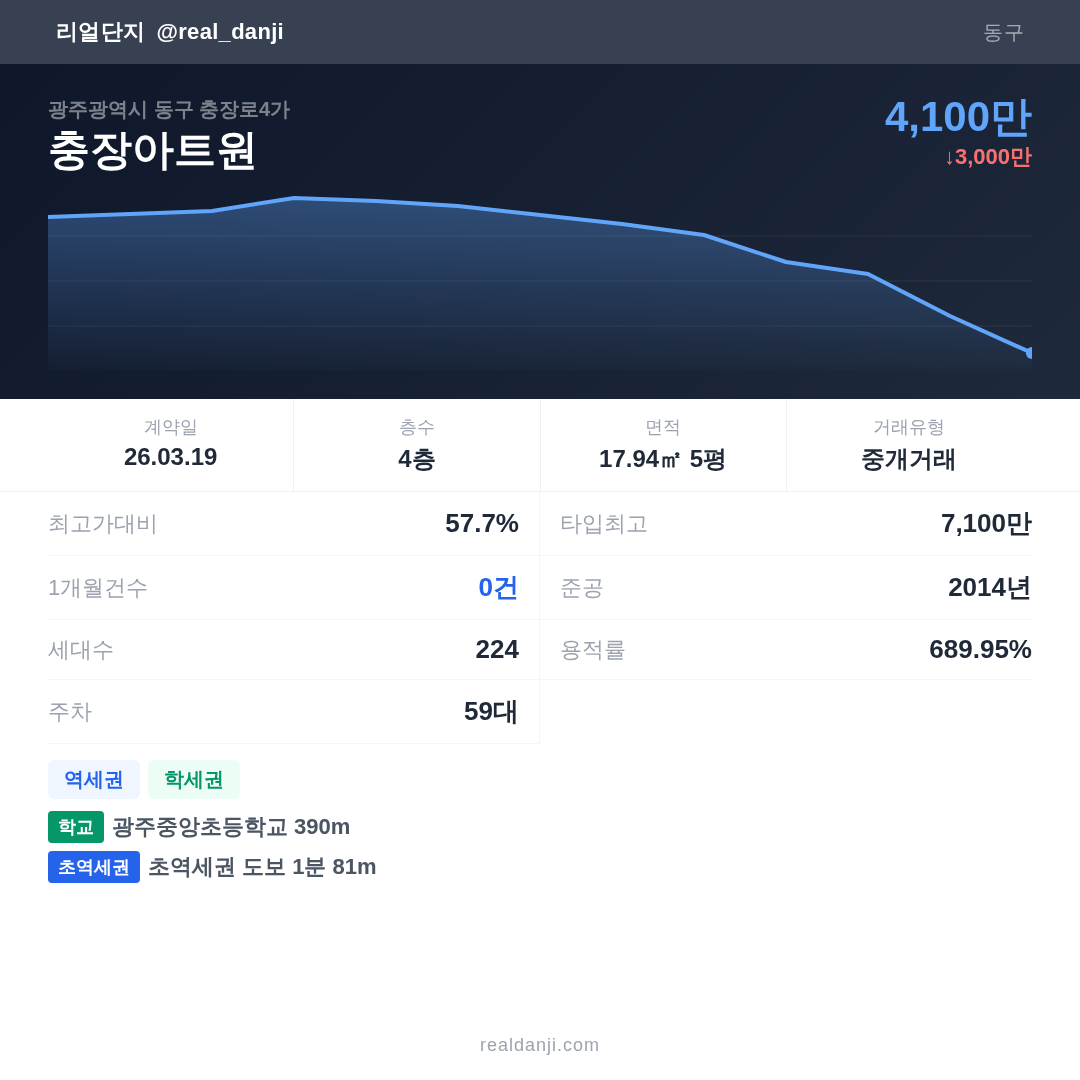 충장아트원 최근 거래가는 7,100만입니다. (2026-03)