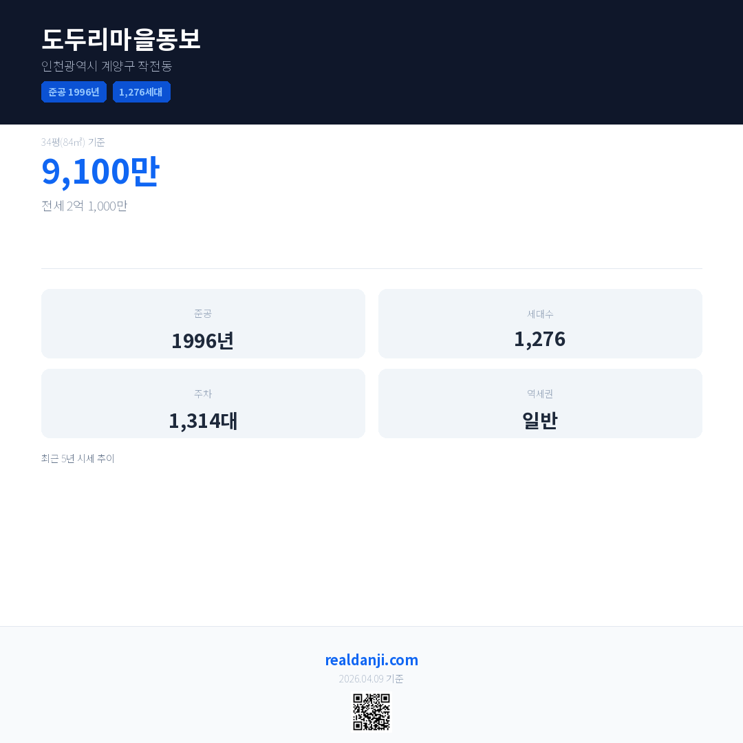 도두리마을동보 최근 거래가는 4억 500만입니다. (2026-03)