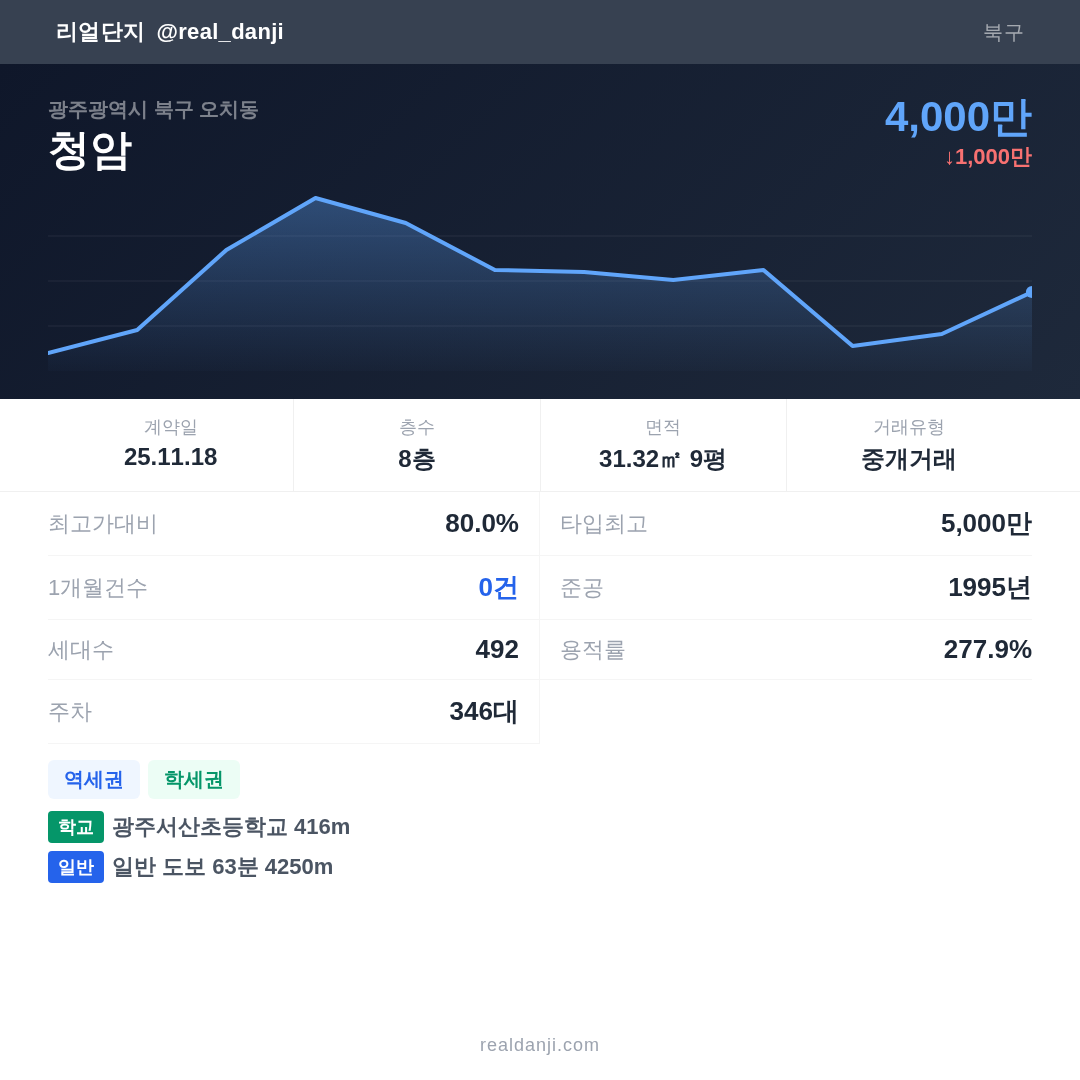 청암 최근 거래가는 5,000만입니다. (2025-11)