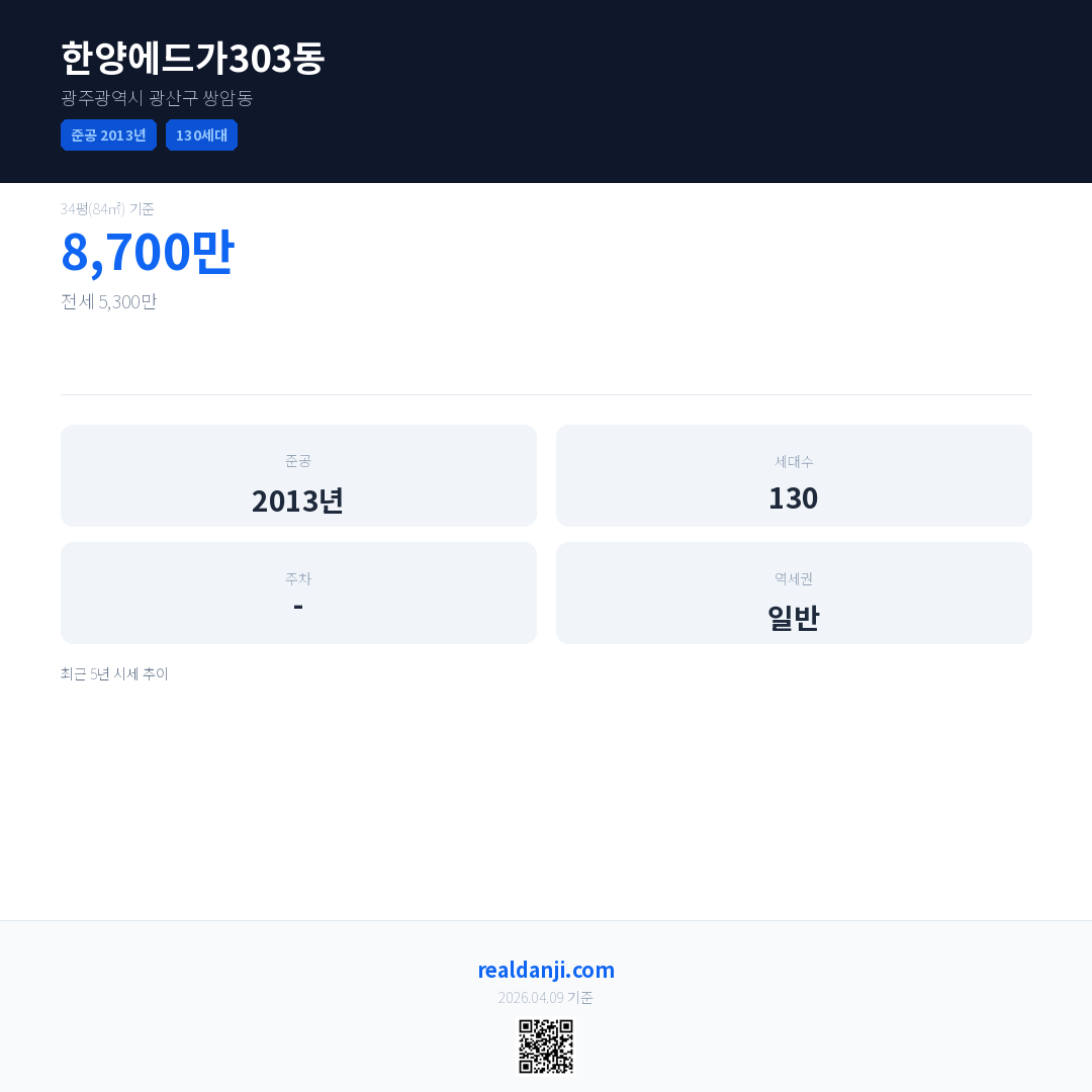한양에드가303동 최근 거래가는 8,700만입니다. (2025-08)