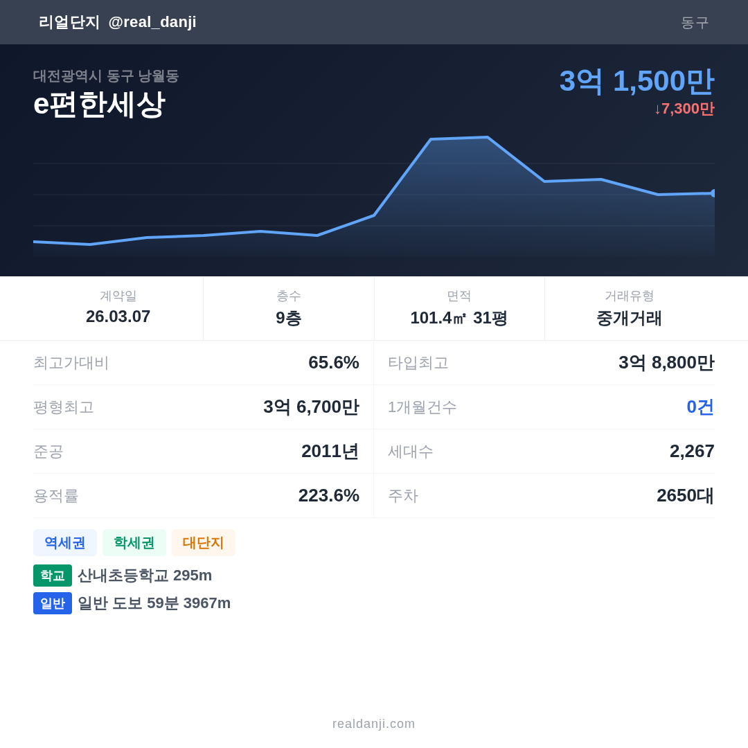 | 2026.03.07 | 101㎡ | 9층 | 3억 1,500만 |