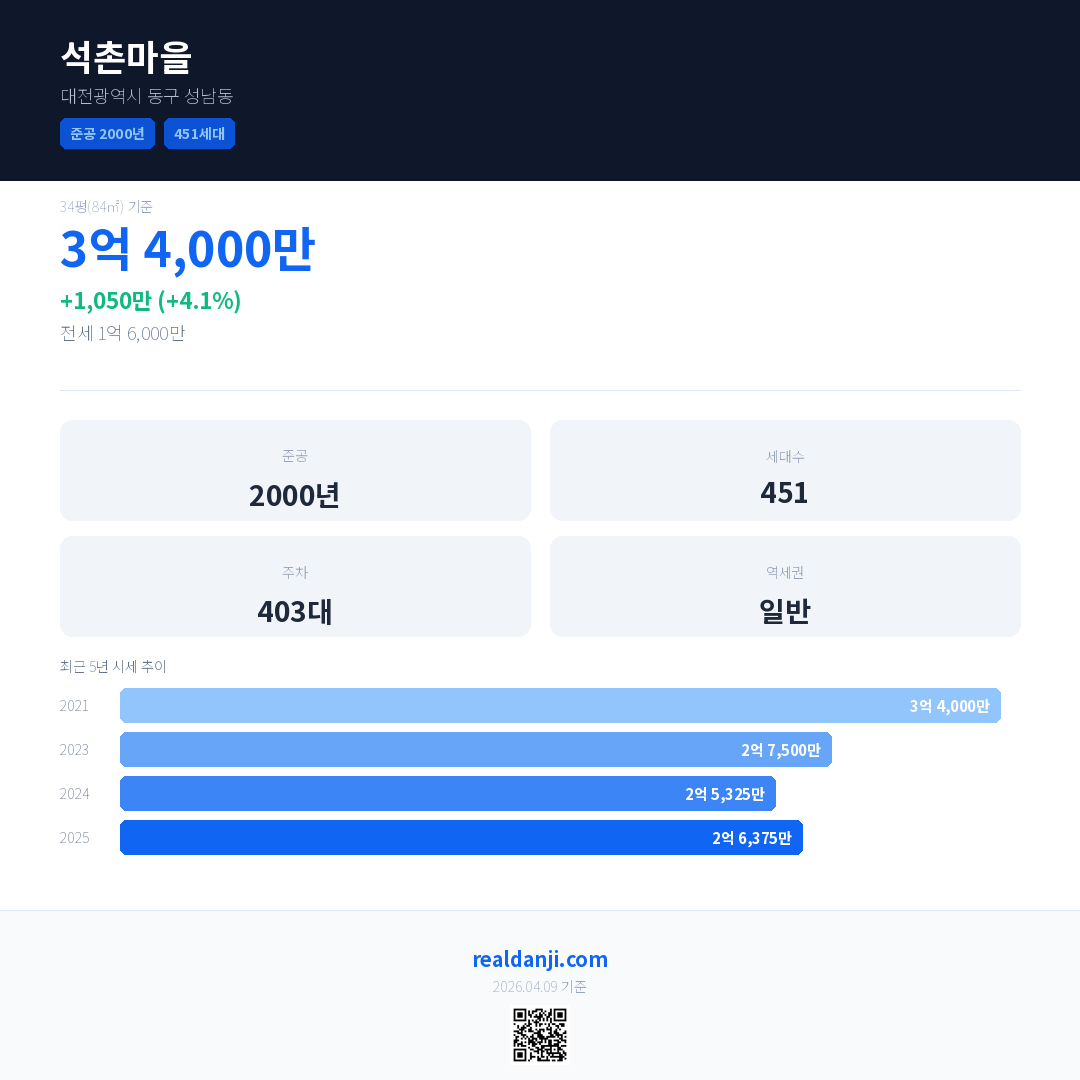석촌마을 최근 거래가는 3억 4,000만입니다. (2026-02)