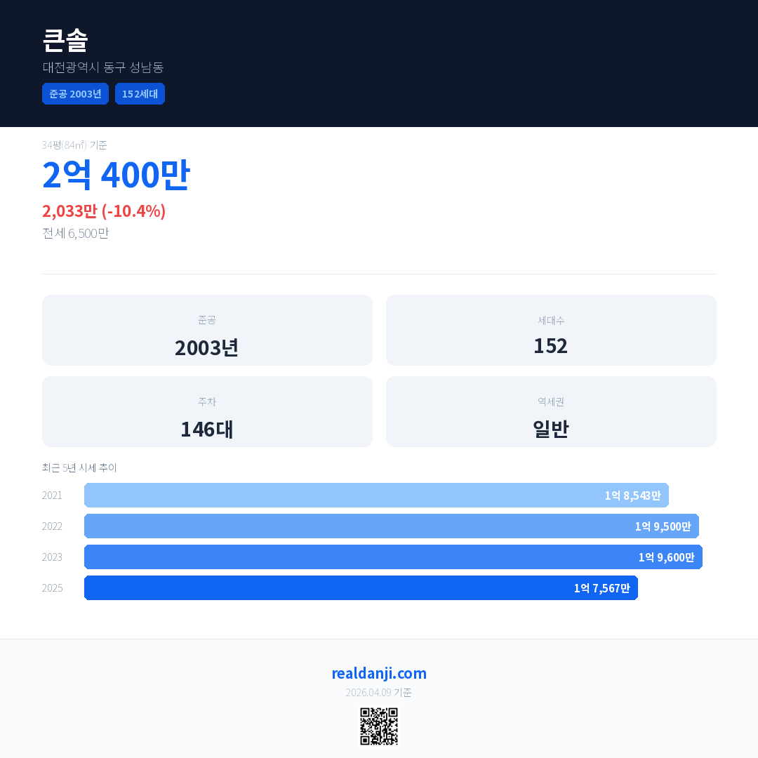 큰솔 최근 거래가는 2억 400만입니다. (2026-02)
