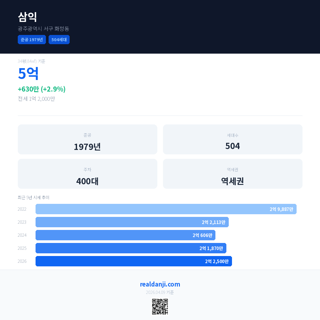 삼익 최근 거래가는 5억입니다. (2026-02)