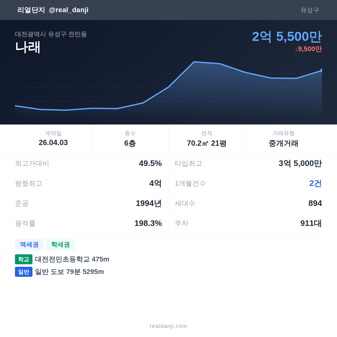 | 2026.04.03 | 70㎡ | 6층 | 2억 5,500만 |
