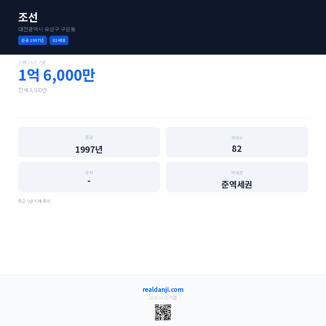 조선 최근 거래가는 1억 6,000만입니다. (2025-11)