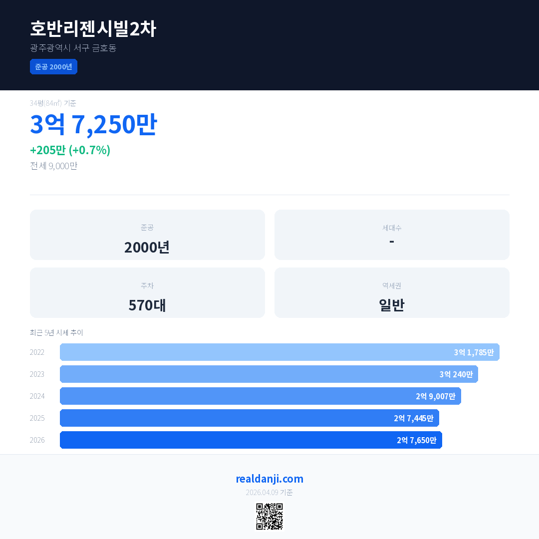 호반리젠시빌2차 최근 거래가는 3억 7,250만입니다. (2026-04)