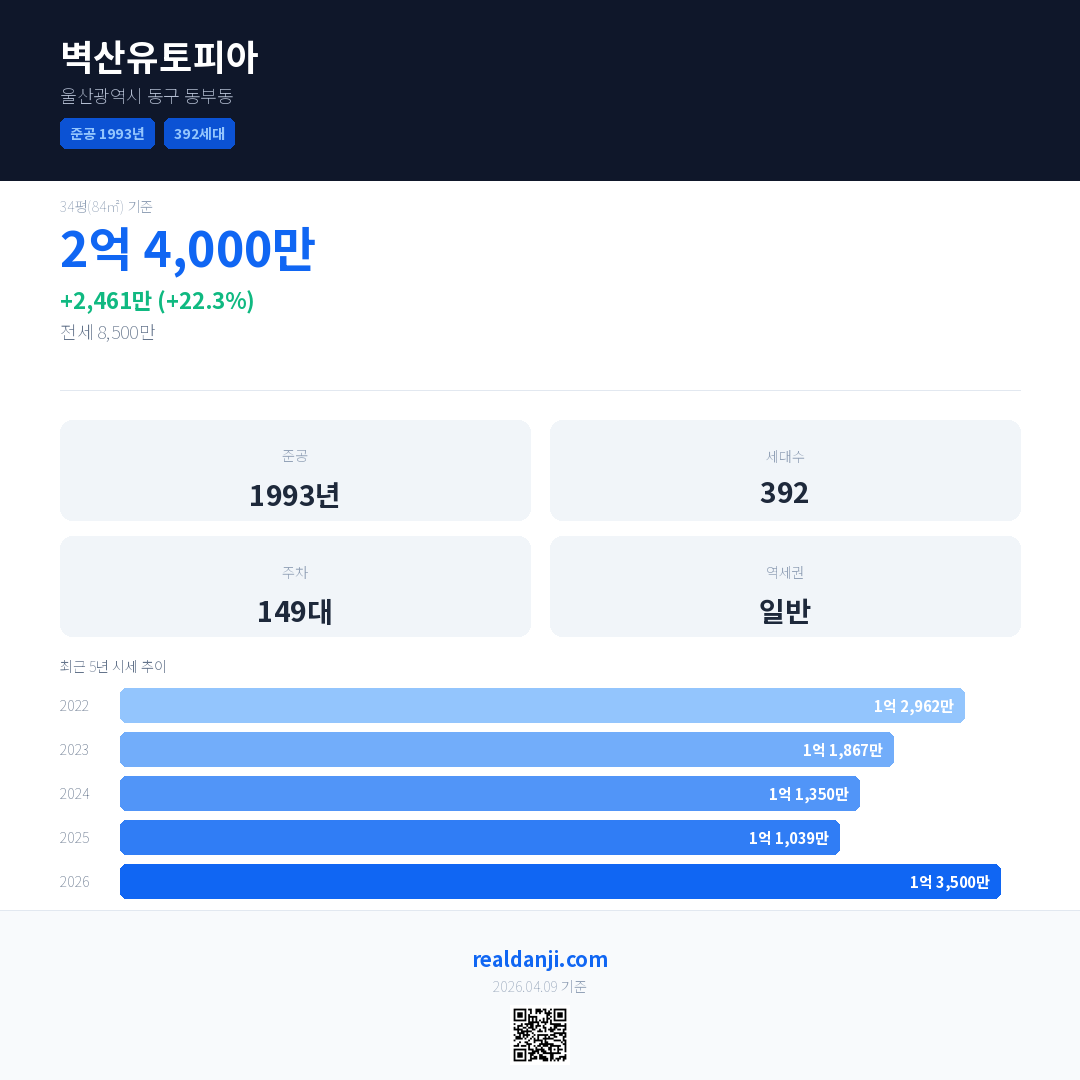 벽산유토피아 최근 거래가는 2억 4,000만입니다. (2026-03)